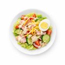 Iceberg lettuce, turkey, ham, yellow cheese, egg, tomato, cucumber, dressing.