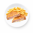 Ham, yellow cheese, tomato, mayonnaise (served with fries).