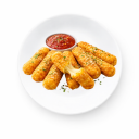Mozzarella sticks, breaded and fried (served with sauce).