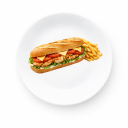 Φιλέτο κοτόπουλο, μαγιονέζα, κίτρινο τυρί, ντομάτα (σερβίρεται με πατάτες).